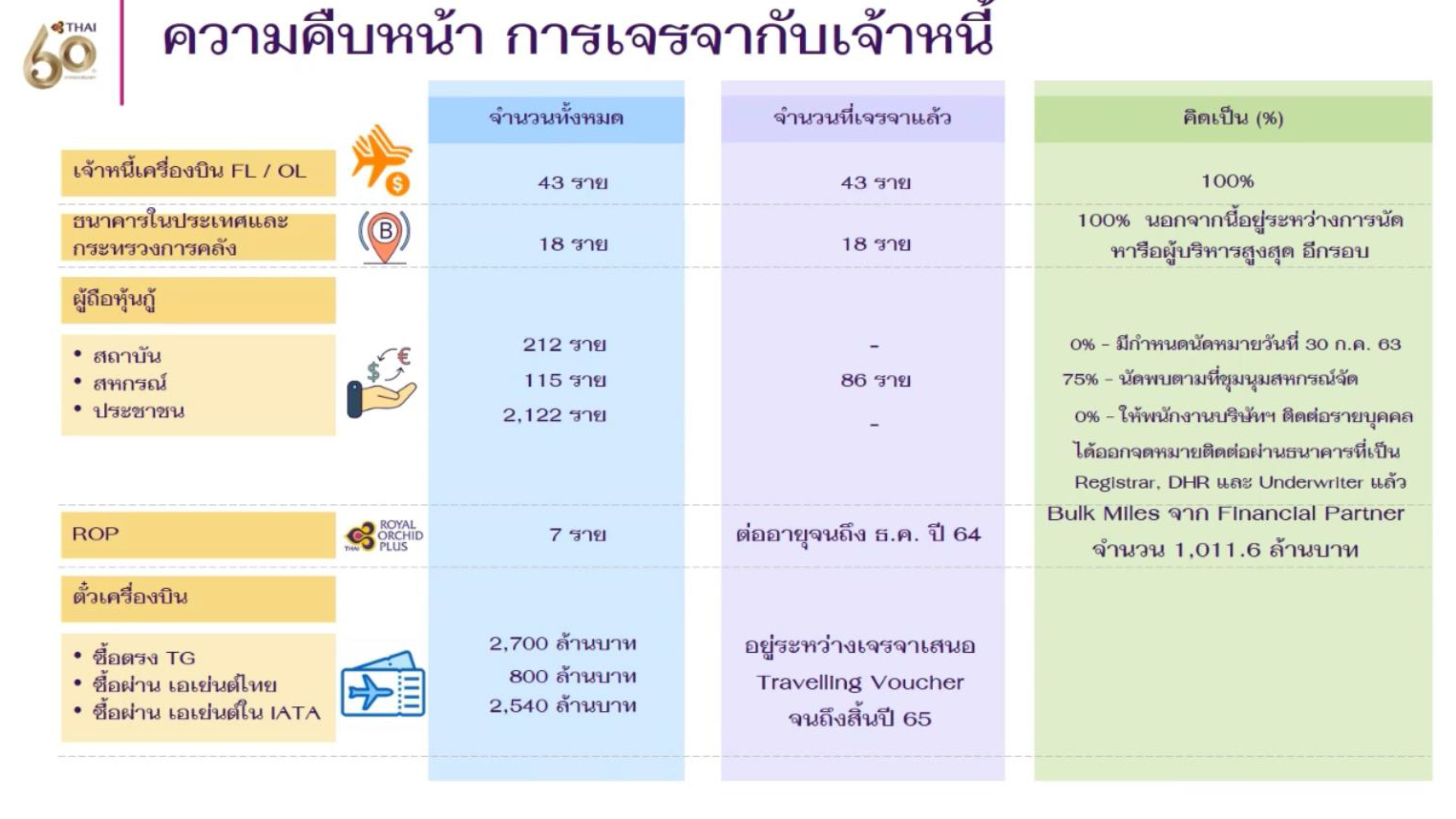 (ที่มา : บริษัท การบินไทย จำกัด (มหาชน) ณ 23 ก.ค.63)
