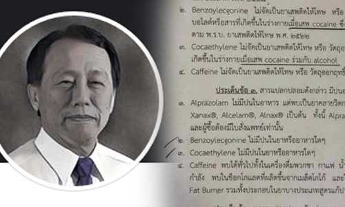 'นพ.แท้จริง' โชว์เอกสารสถาบันนิติเวชวิทยา รพ.ตำรวจ ระบุสารแปลกปลอม 2 ชนิดในตัว 'บอส อยู่วิทยา' เกิดได้เมื่อเสพโคเคน ไม่มีปะปนในยาหรืออาหารอื่น จี้คณะทำงานทุกชุดหาคำตอบให้สังคม ย้ำ ยาเสพติดไม่เหมือนแอลกอฮอล์ ตรวจพบในร่างกายต้องเอาผิดได้ตามกฎหมาย