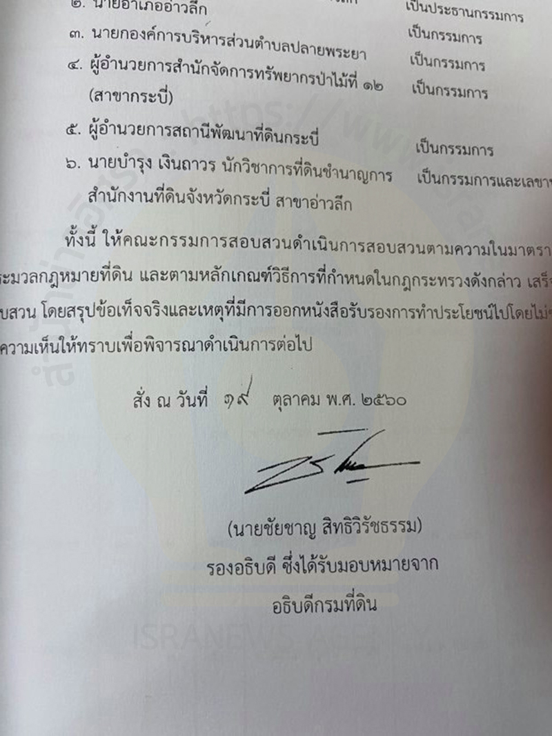 เมื่อผลสอบสวนไม่สอดคล้องกับผลการตรวจสอบข้อมูลเบื้องต้นของหวัดกระบี่และกรมที่ดิน จึงยังไม่ได้ข้อยุติว่าออก น.ส.3 ก.โดยไม่ชอบด้วยกฎหมายหรือไม่ ขณะนี้อยู่ระหว่างการสอบสวนเพิ่มเติมของกรมที่ดิน และอยู่ระหว่างการพิจารณาคดีของศาลปกครองภูเก็ต