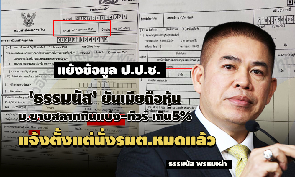(อ่านประกอบ : ปริศนา!เมียธรรมนัสถือหุ้น บ.ขายสลากกินแบ่ง-ทัวร์ เกิน 5 % -ยังติดต่อเจ้าตัวแจงไม่ได้)