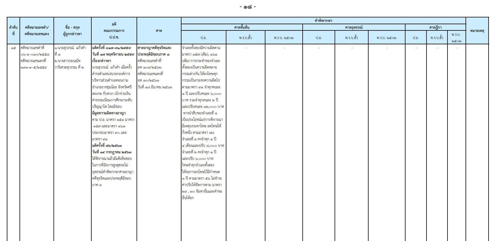 ป.ป.ช. เผยแพร่ความคืบหน้าผลคดีกล่าวหา 'สุวรรณ์ แก้วคำ' อดีตนายกอบต.คอนกาม อำเภอยางชุมน้อย จังหวัดศรีสะเกษ เบิกจ่ายเงินค่าธรรมเนียมการศึกษาระดับปริญญาโทโดยมิชอบ ล่าสุดศาลอาญาคดีทุจริตและประพฤติมิชอบภาค 3 พิพากษาลงโทษจำคุก 2 ปี ปรับ 12,000 บาท ทางนำสืบเป็นประโยชน์ลดโทษให้กึ่งหนึ่ง เหลือ 1 ปี 4 เดือน ปรับ 8,000 บาท พวก 1 ราย โดน 1 ปี ปรับ 6,000 บาท แต่โทษจำคุกจำเลยทั้งสองให้รอไว้มีกำหนด 3 ปี