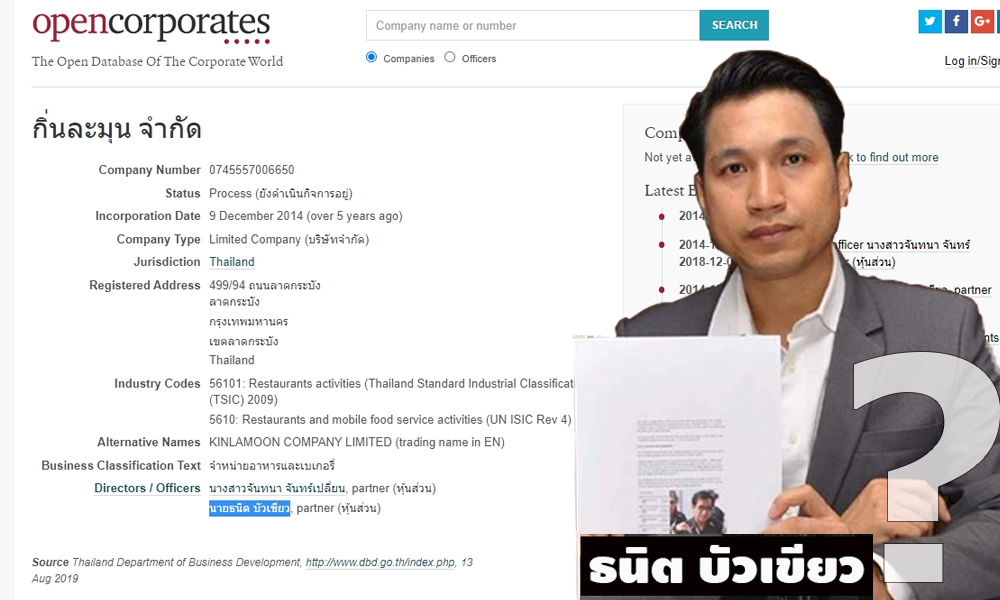 หลังได้รับแจ้งผู้พักอาศัยอยู่บ้านเลขที่ 499/94 ถนนลาดกระบัง แขวงลาดกระบัง เขตลาดกระบัง กรุงเทพมหานคร ซึ่งเป็นที่ตั้งบริษัท กิ่นละมุน จำกัด แจ้งประกอบธุรกิจ จำหน่ายอาหารและเบเกอรี่ ที่ นายธนิต ร่วมถือหุ้นอยู่ ว่า "นายธนิต ไม่ได้อาศัยอยู่ ณ บ้านหลังนี้แล้ว ไปตั้งร้านอยู่แถวๆสมุทรสาครแล้ว"