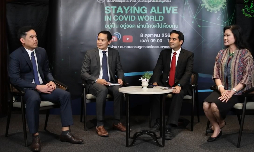 เมื่อวันที่ 8 ต.ค. สมาคมเศรษฐศาสตร์ธรรมศาสตร์ จัดสัมมนาเศรษฐกิจประจำปี TEA Annual Forum 2020 ในรูปแบบออนไลน์ โดยมีหัวข้อว่า ‘อยู่เป็น อยู่รอด ผ่านโควิดไปด้วยกัน-STAYING ALIVE IN COVID WORLD’