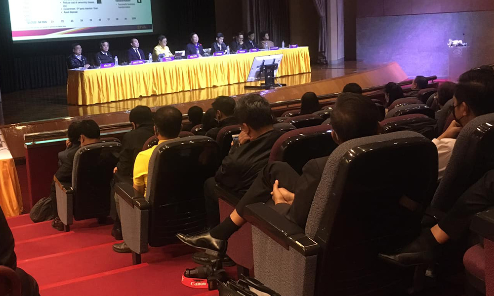 (การประชุม staff meeting พนักงานบริษัท การบินไทย ที่สำนักงานใหญ่ บริษัท การบินไทย เมื่อวันที่ 9 ต.ค.2563)