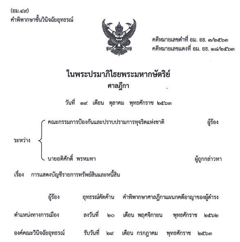 พิพากษายืน. (คดีหมายเลขแดงที่ อม.อธ.18/2563 วันที่ 19 ต.ค.2563)