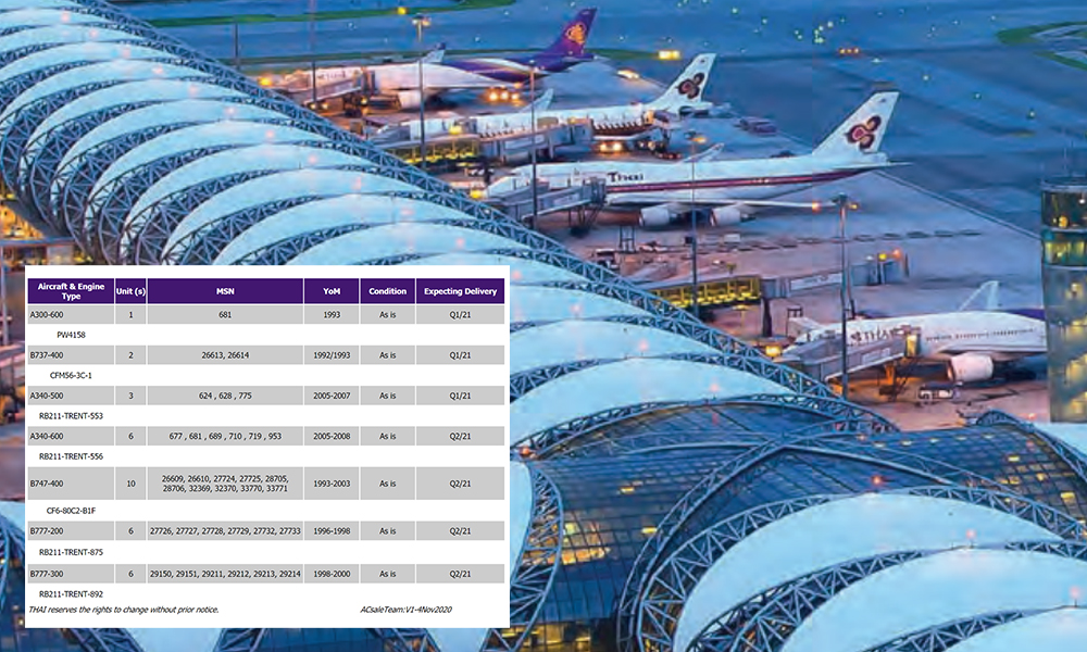สำนักข่าวอิศรารายงานว่า ก่อนหน้านี้ บริษัท การบินไทย ได้ประกาศขายเครื่องบินแอร์ แบบ A340-500 จำนวน 3 ลำ และแบบ A340-600 จำนวน 6 ลำ ซึ่งส่วนหนึ่งจอดทิ้งไว้ที่สนามบินอู่ตะเภา แต่จนถึงปัจจุบันยังไม่มีผู้สนใจซื้อ จึงต้องประกาศขายอีกครั้งในครั้งนี้ ขณะที่ในรายงานประจำปี 2562 ของบริษัท การบินไทย ระบุว่า ณ วันที่ 31 ธ.ค.2562 บริษัทฯมีเครื่องบินทั้งสิ้น 103 ลำ
