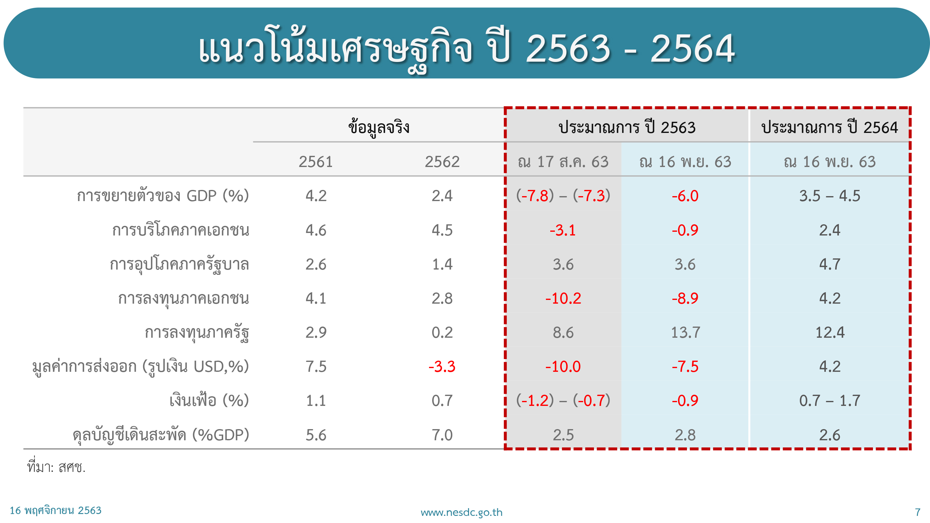 • จีดีพีไตรมาส 3 ลบ 6.4%! สภาพัฒน์ฯคาดทั้งปีหดตัวร้อยละ 6 จับตา 'โควิดรอบ 2-การเมือง'