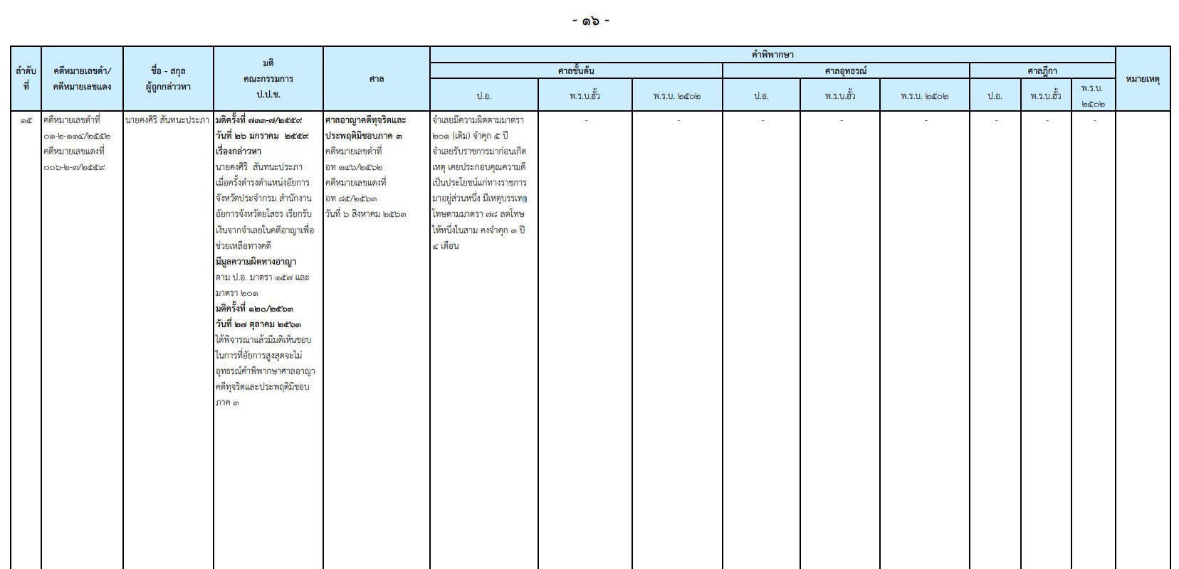 ล่าสุด เมื่อวันที่ 6 สิงหาคม 2563 ศาลอาญาคดีทุจริตและประพฤติมิชอบภาค 3 พิพากษาว่า จำเลย มีความผิด ตามมาตรา 201 จำคุก 5 ปี