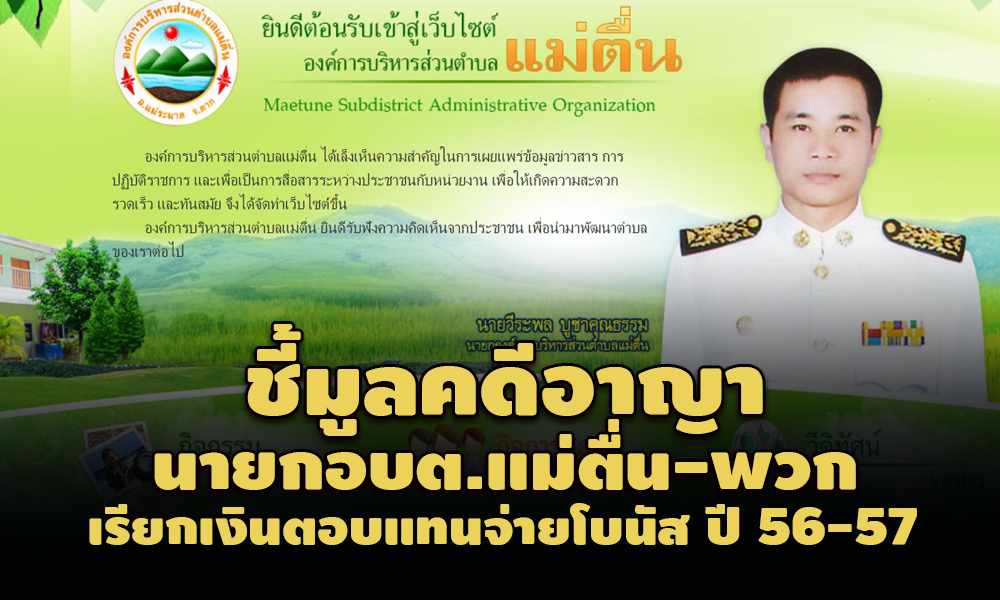 สำนักข่าวอิศรา (www.isranews.org) รายงานว่า เมื่อเร็วๆ นี้ เว็บไซต์สำนักงานคณะกรรมการป้องกันและปราบปรามการทุจริตแห่งชาติ (ป.ป.ช.) ได้เผยแพร่มติที่ประชุมคณะกรรมการ ป.ป.ช. ชี้มูลความผิดทางอาญา นายวีระพล บูชาคุณธรรม เมื่อครั้งดำรงตำแหน่งนายกองค์การบริหารส่วนตำบล (อบต.) แม่ตื่น จังหวัดตาก และพวกประกอบไปด้วย 1. นางสาวสมนึก เขียวแก้ว ผู้ช่วยนักวิเคราะห์นโยบายและแผน อบต. แม่ตื่น 2. นางสุมารินทร์ การังใจ เจ้าหน้าที่การเงินและบัญชี อบต. แม่ตื่น 3. นายกรกฤศ วันธนานันต์ ปลัดอบต. แม่ตื่น 4. นายจีรยุทธ ปาเตียง หัวหน้าสำนักปลัดอบต. แม่ตื่น คดี เรียก รับเงินประโยชน์ตอบแทนอื่น เป็นกรณีพิเศษ (โบนัส) ประจำปีงบประมาณ พ.ศ.2556 และ 2557 จากพนักงานส่วนตำบลและลูกจ้าง