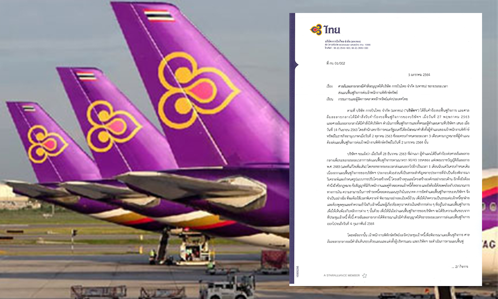 สำหรับหนังสือของบริษัท การบินไทย ระบุว่า ตามที่ บริษัท การบินไทย จำกัด (มหาชน) ได้ยื่นคำร้องขอฟื้นฟูกิจการ และศาลล้มละลายกลางได้มีคำสั่งรับคำร้องขอฟื้นฟูกิจการของบริษัทฯ เมื่อวันที่ 27 พ.ค.2563 และศาลล้มละลายกลางได้มีคำสั่งให้บริษัทฯ ดำเนินการฟื้นฟูกิจการและตั้งคณะผู้ทำแผนตามที่บริษัทฯ เสนอ เมื่อวันที่ 14 ก.ย.2563
