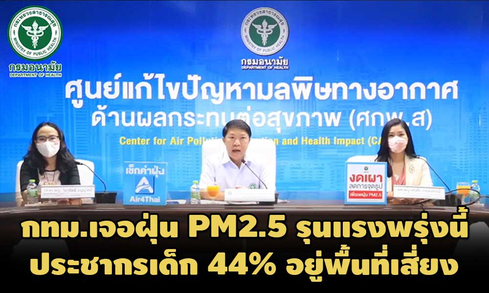 กรมอนามัย เผยประชากรเด็ก 44% อยู่ในพื้นที่เสี่ยงฝุ่น PM2.5 คาด 27-28 ม.ค. กทม.เจอปัญหาหนัก ขอหลีกเลี่ยงทำกิจกรรมกลางแจ้ง