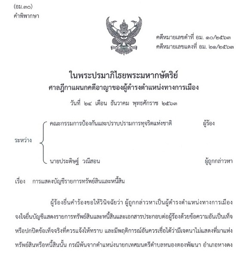 ผู้ร้อง คณะกรรมการป้องกันและปราบปรามการทุจริตแห่งชาติ