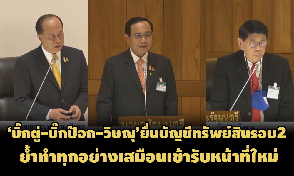 'บิ๊กตู่ - บิ๊กป๊อก - วิษณุ'แจงยื่นบัญชีทรัพย์สินต่อ ป.ป.ช.รอบ 2 หลังตั้งรัฐบาลปี 62 ย้ำทุกอย่างเสมือนเข้ารับหน้าที่ใหม่ แม้กฎหมายเปิดช่องไม่ต้องยื่นซ้ำ