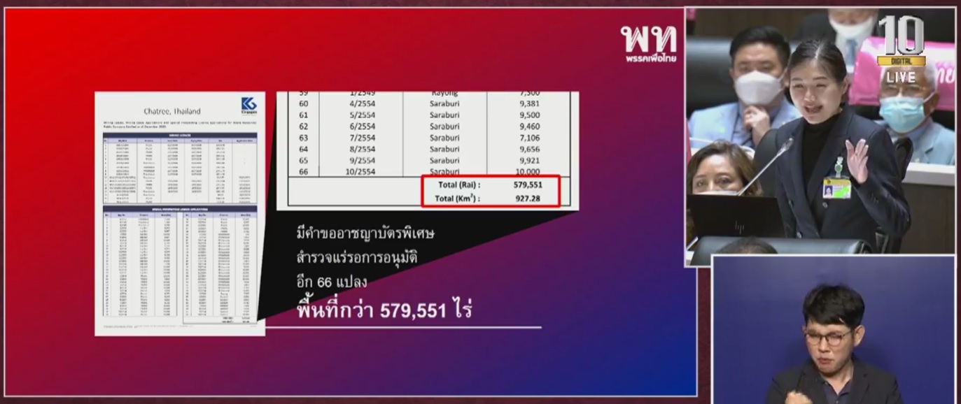 “ที่ดินเกือบ 4 แสนไร่เศษดังกล่าว บริษัท อัคราฯ ขอไปตั้งแต่ปี 2546 ผ่านไปกว่า 17 ปี ไม่มีวี่แววได้รับใบอนุญาต พอไทยจะแพ้คดีขึ้นมา นับจากวันที่บริษัท อัคราฯมีหนังสือถึงกรมอุตสาหกรรมพื้นฐานเหมืองแร่ ใช้เวลาเพียงแค่ 3 เดือนเท่านั้น บริษัท อัคราฯ ได้รับอาชญาบัตรพิเศษดังกล่าวแล้ว” น.ส.จิราพร กล่าว