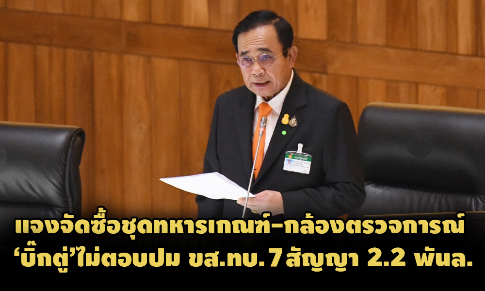 นายกฯ ยังไม่ตอบปม ขส.ทบ.จัดซื้อรถบัส 6 ปี 7 สัญญา 2.2 พันล. แต่แจงแผนจัดซื้อกล้องตรวจการณ์ - ชุดทหารเกณฑ์ ยืนยันกองทัพสืบราคา ทำตามขั้นตอนที่กฎหมายกำหนด ย้ำเรือดำน้ำเป็นเรื่องจำเป็น ช่วยปกป้องอธิปไตยของประเทศ