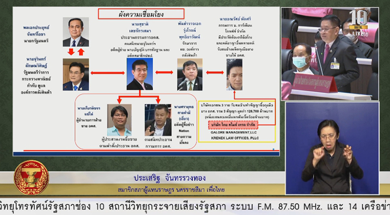 นายประเสริฐ กล่าวด้วยว่า แม้จะไม่ได้เกี่ยวข้องกับ พล.อ.ประยุทธ์ โดยตรง แต่ในฐานะนายกรัฐมนตรี หัวหน้ารัฐบาล และทราบมาโดยตลอดว่ามีเหตุการณ์เหล่านี้เกิดขึ้น นับตั้งแต่มีการตั้งกระทู้ถามสดที่สภาผู้แทนราษฎรวันที่ 11 พ.ย.2563 จึงอาจเข้าข่ายละเว้นปฏิบัติหน้าที่ ไม่ปกป้องผลประโยชน์ของชาติ จำนวน 2,000 ล้านบาท ซึ่งเป็นวงเงินสูงที่มีพฤติกรรมเข้าข่ายการทุจริต