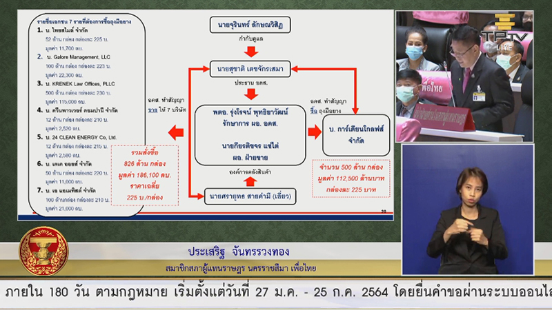 นายประเสริฐ กล่าวต่ออีกว่า เมื่อตรวจสอบข้อมูลบริษัทการ์เดียน โกลฟ์ จำกัด พบว่าเพิ่งจัดตั้งเมื่อวันที่ 22 มิ.ย.2563 ก่อนการทำสัญญากับ อคส.เพียง 2 เดือน มีทุนจดทะเบียน 2 ล้านบาท แต่ปรากฏว่าสามารถทำธุรกิจมูลค่า 1.12 แสนล้านบาททั้งที่ไม่น่าจะเป็นไปได้