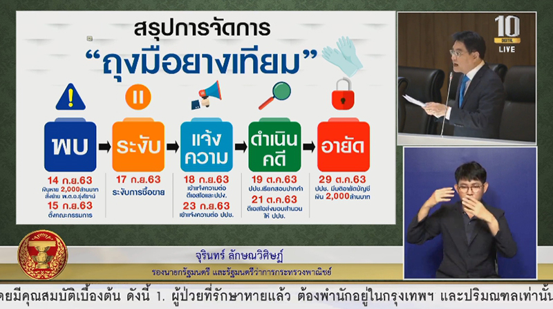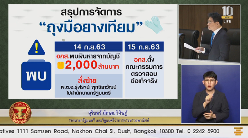 “ส่วนกรณีที่อดีตรักษาการผู้อำนวยการ อคส.พูดพาดพิงว่า ผมรับทราบเรื่องจัดการซื้อถุงมือยาง ผมกราบเรียนว่าเป็นการฟังความข้างเดียว ทำอย่างนี้ เสียยี่ห้ออดีตรัฐมนตรีหมดเลย” นายจุรินทร์ กล่าว