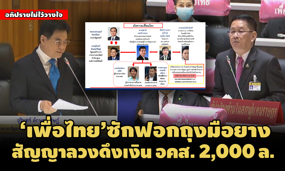 'ประเสริฐ' เปิดซักฟอกทุจริตถุงมือยาง อ้าง 'จุรินทร์' ตั้งคนใกล้ชิด นั่งบอร์ด อคส. พบ สัญญาลวงดึงเงินออก อคส. 2,000 ล้านบาท เตรียมยื่น ป.ป.ช.-ศาลฎีกานักการเมืองสอบต่อ ด้าน 'จุรินทร์' โต้อย่าฟังความข้างเดียว เสียยี่ห้อรัฐมนตรี ยันเรื่องถึงมือ ป.ป.ช. สอบครบทุกคน เบื้องต้นพบผู้เกี่ยวข้อง 3 คนรวม 'พ.ต.อ.รุ่งโรจน์' อดีตรักษาการ ผอ.อคส.ด้วย