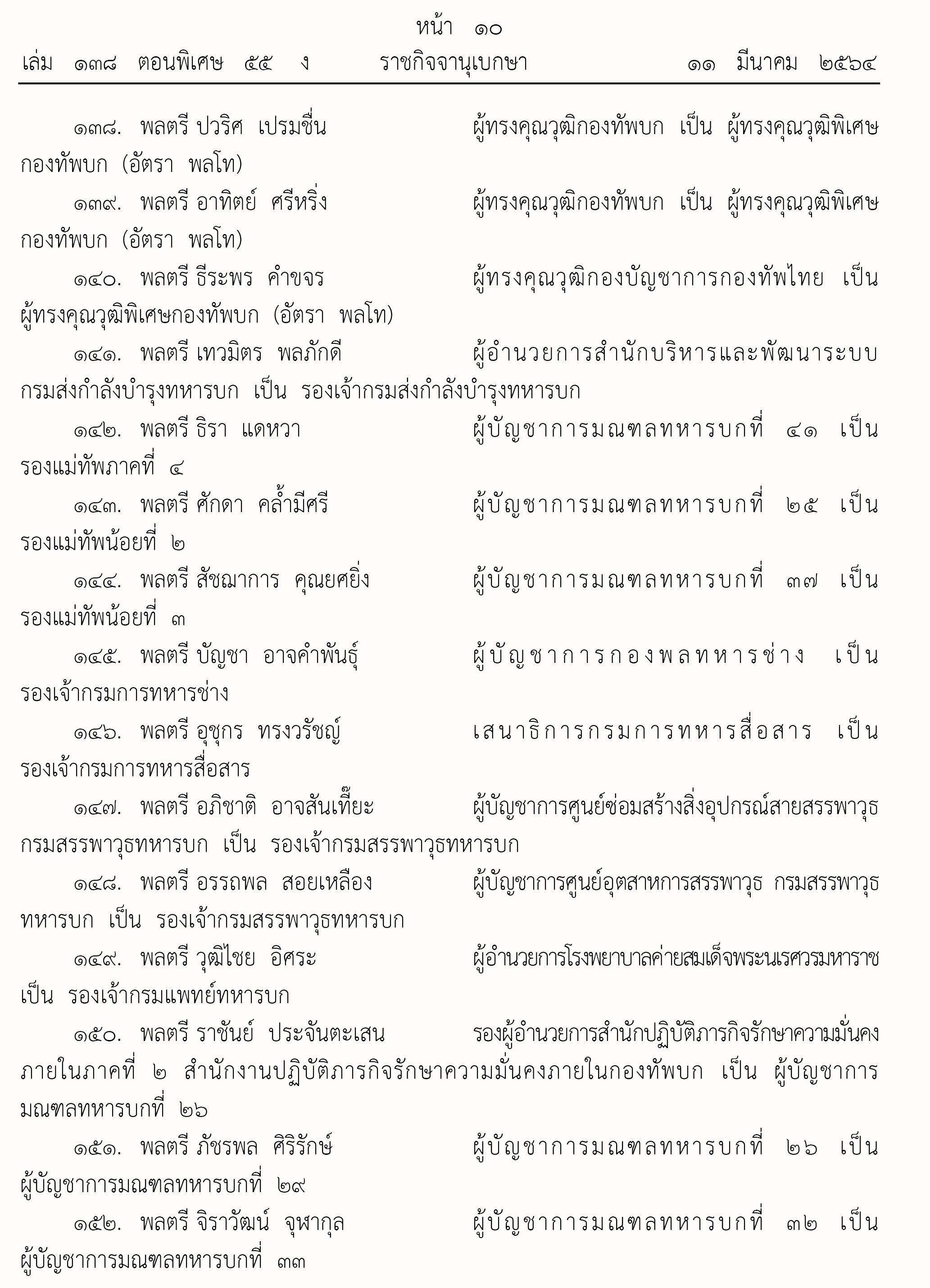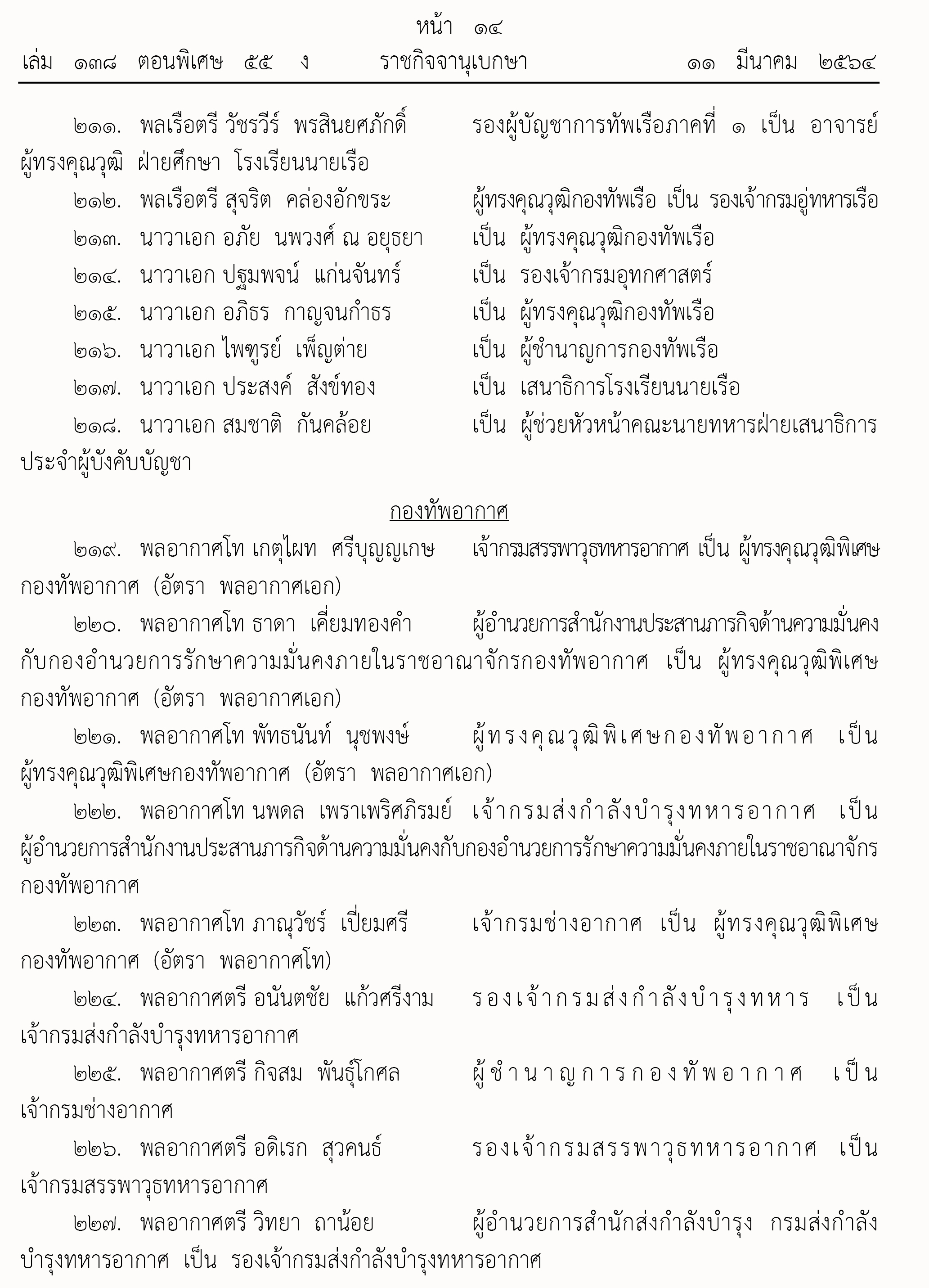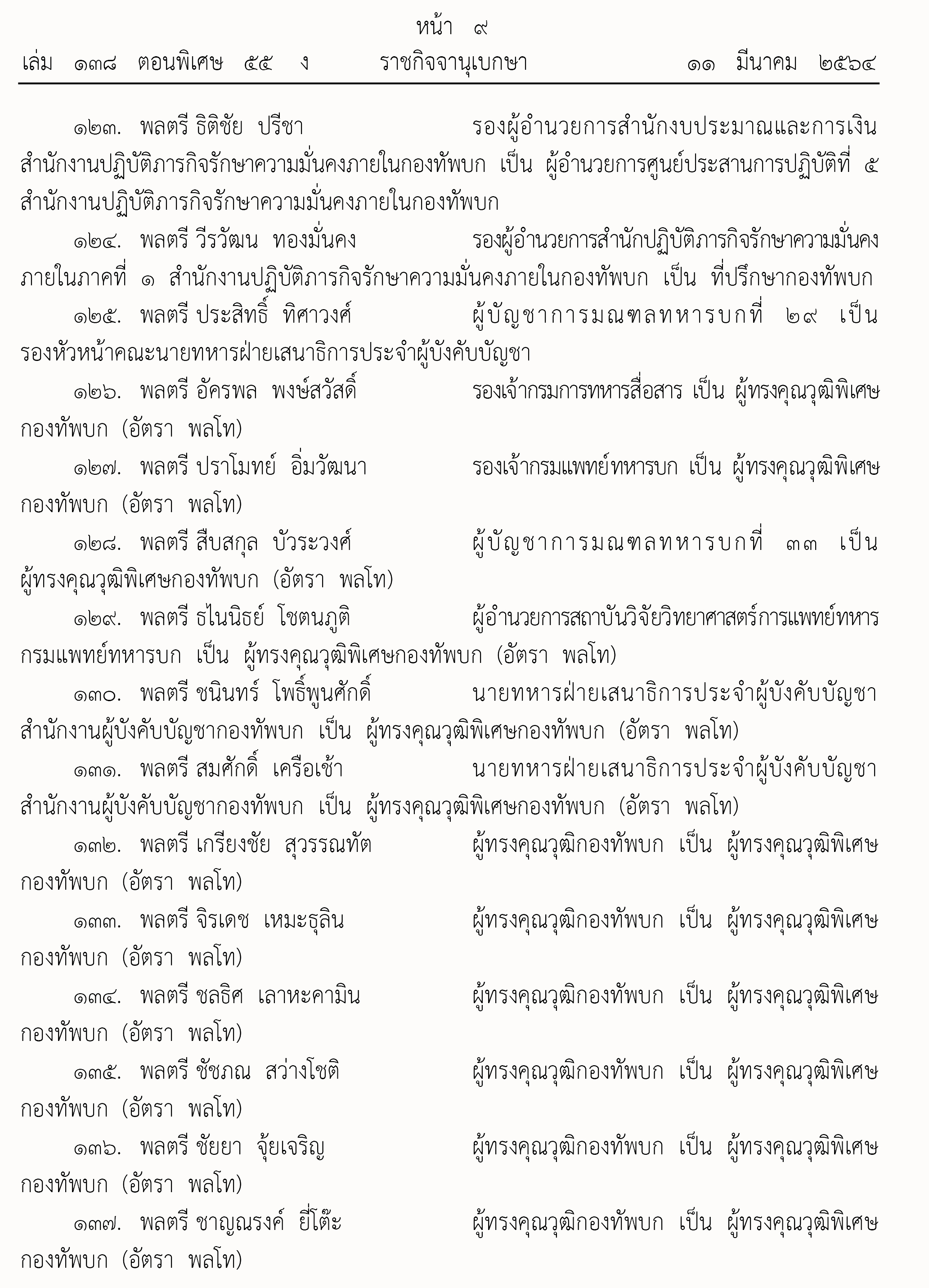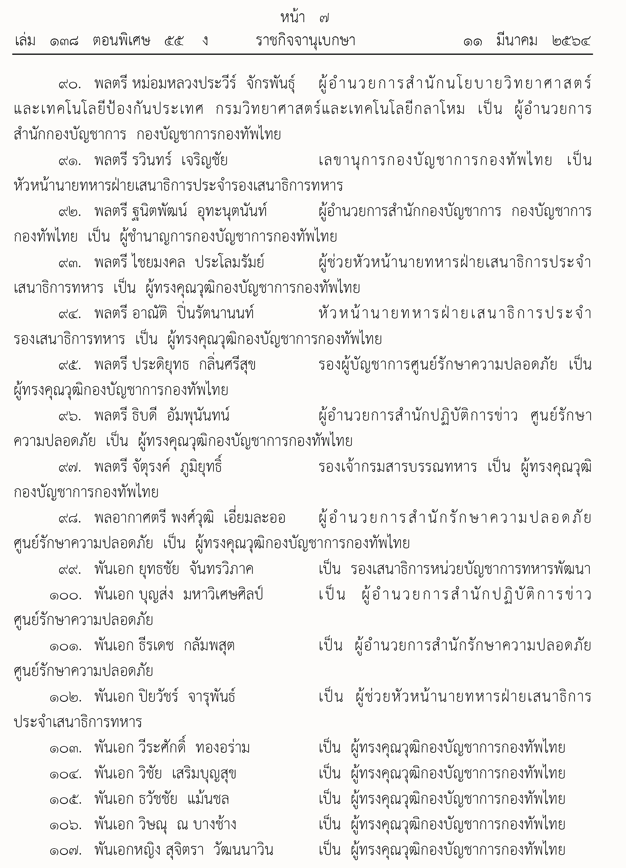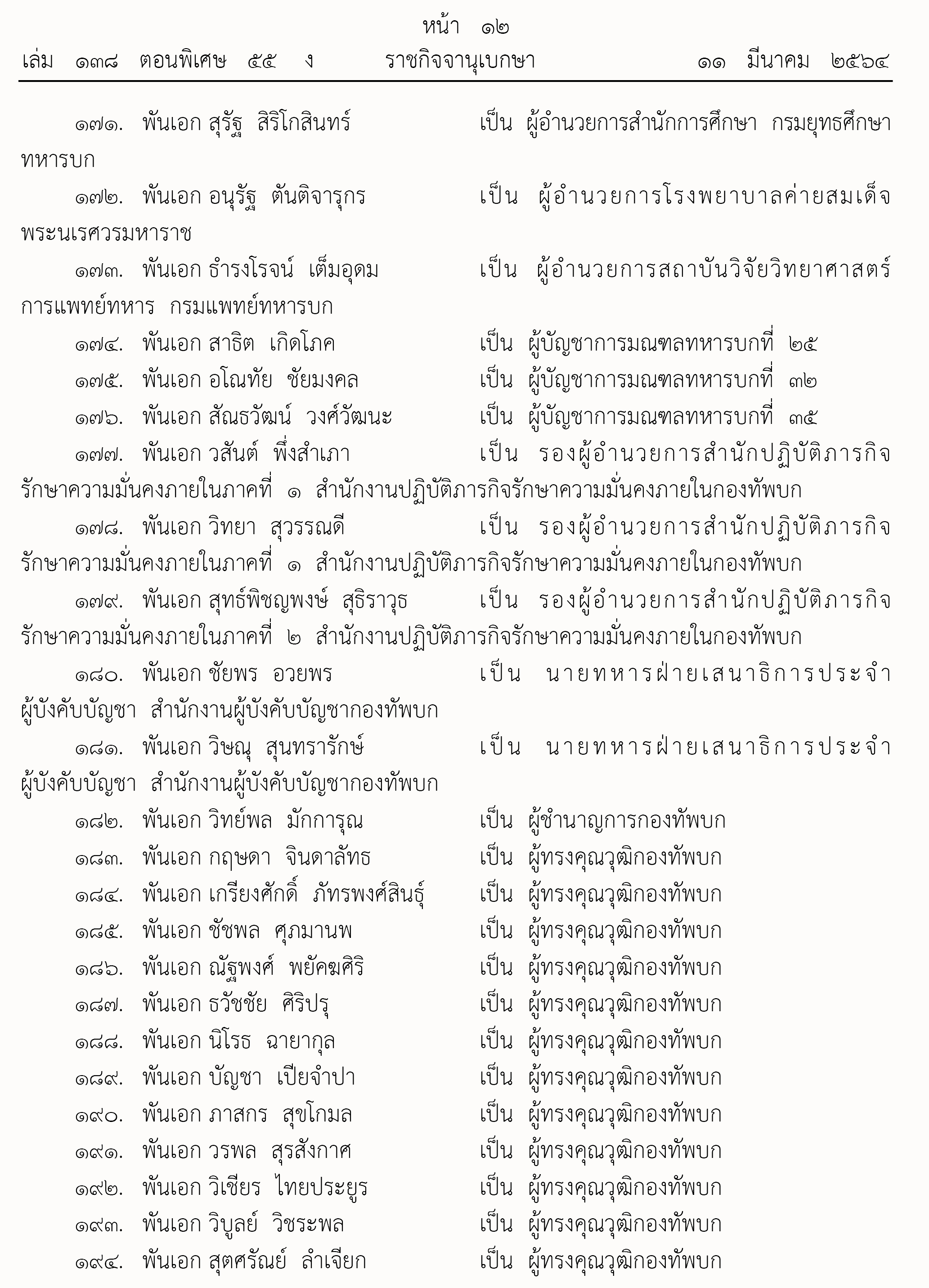 เว็บไซต์ราชกิจจานุเบกษา เผยแพร่ ประกาศสำนักนายกรัฐมนตรี เรื่องให้นายทหารรับราชการ ความว่ามีพระบรมราชโองการโปรดเกล้าโปรดกระหม่อมให้นายทหารรับราชการสนองพระเดชพระคุณ จำนวน 236 นาย