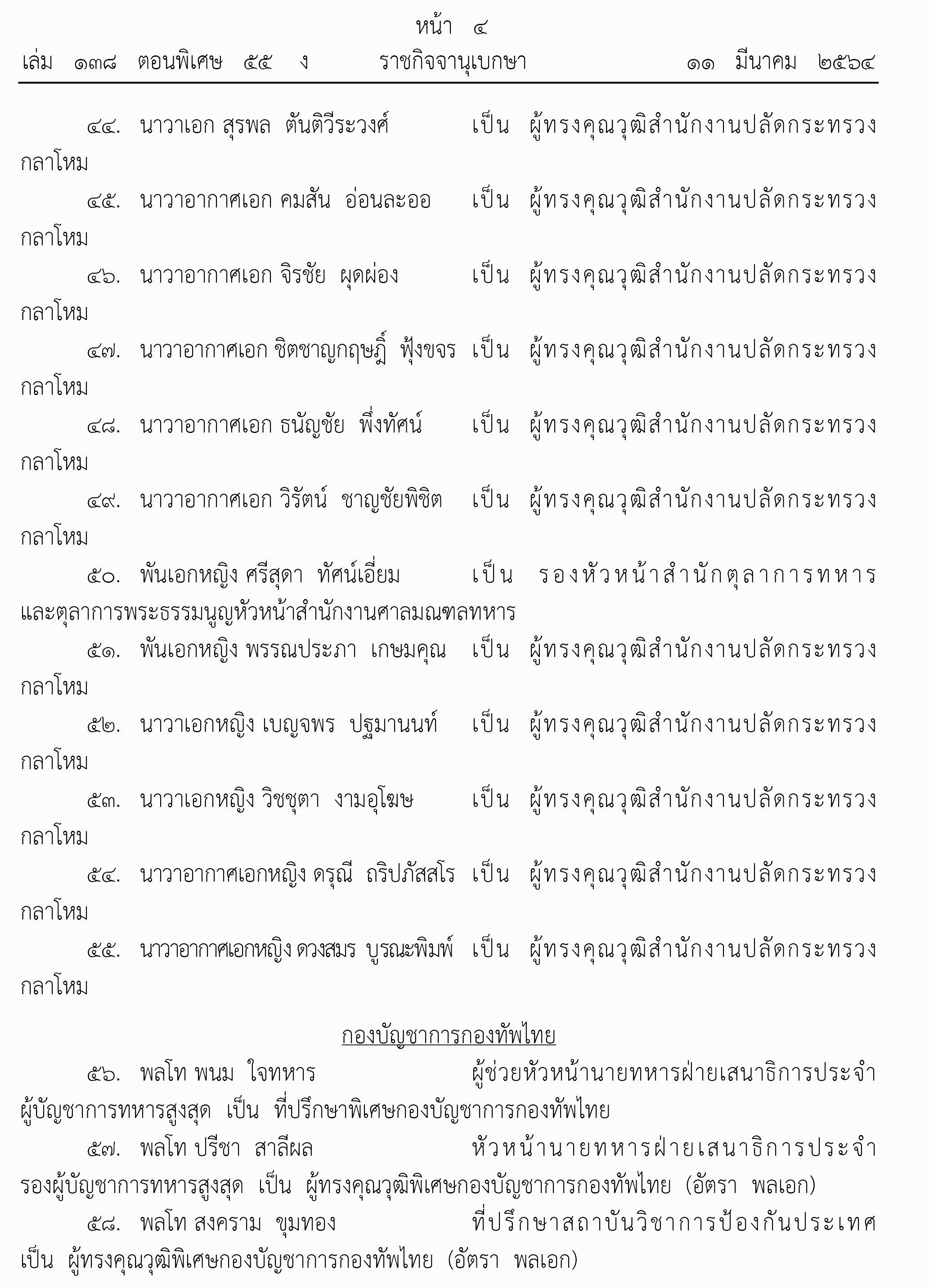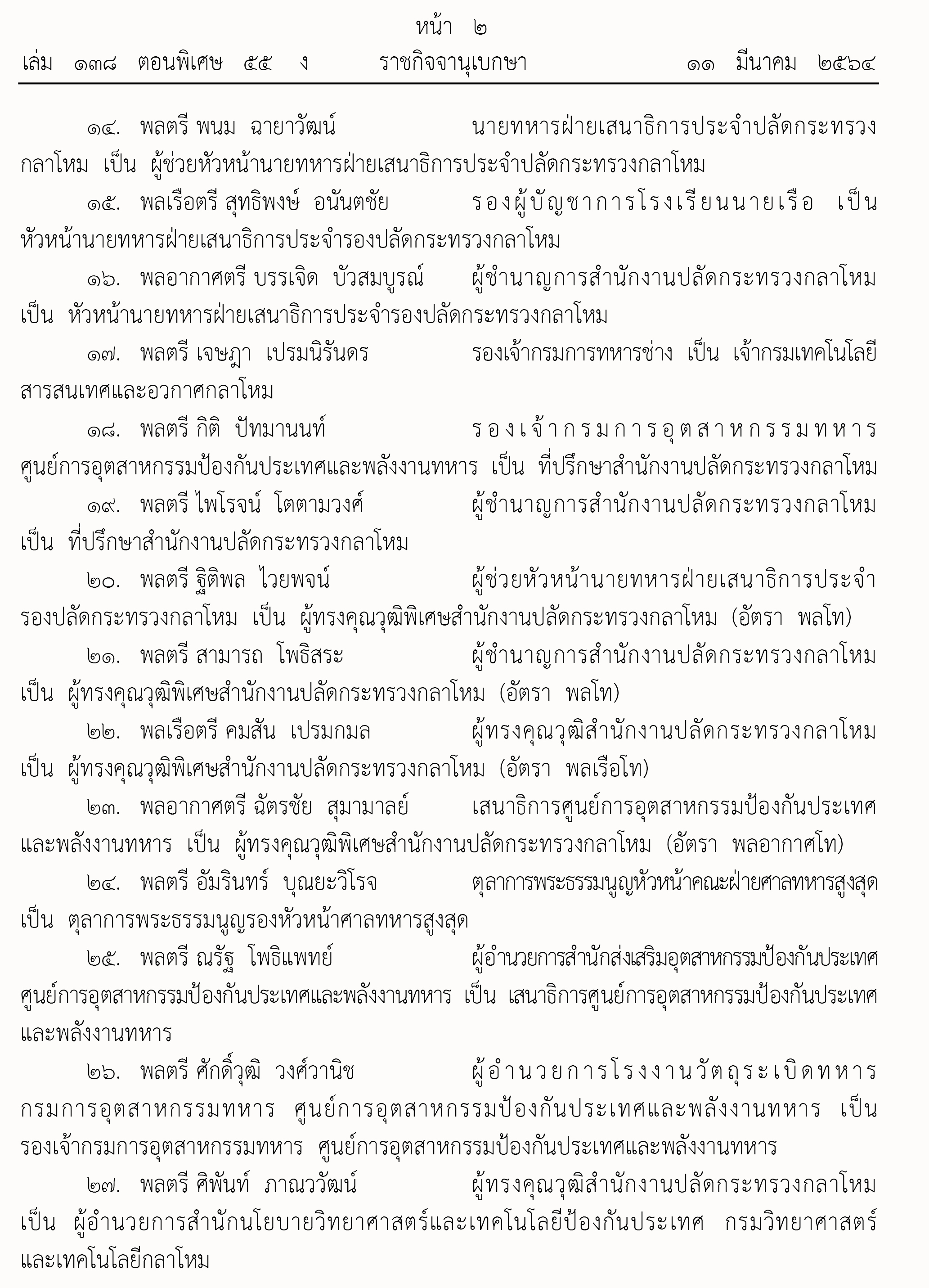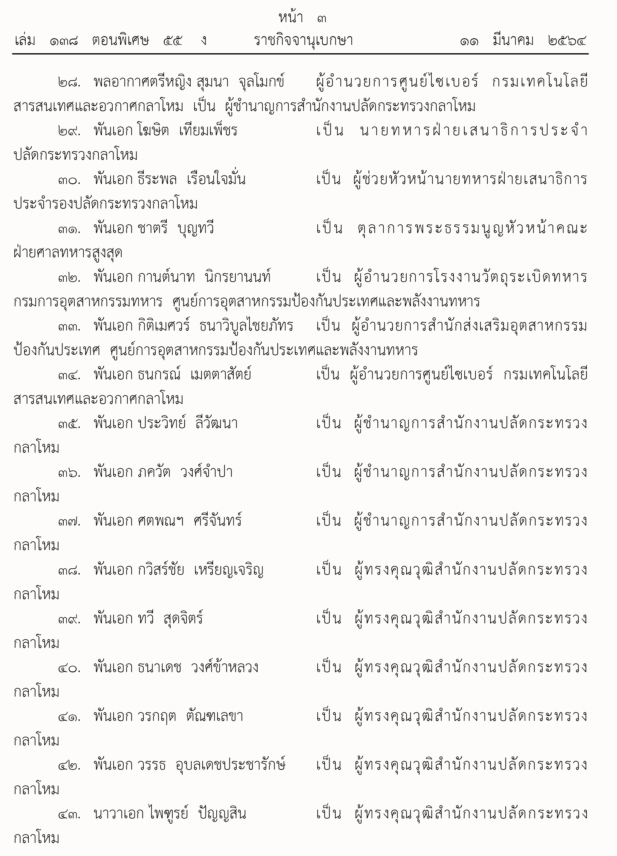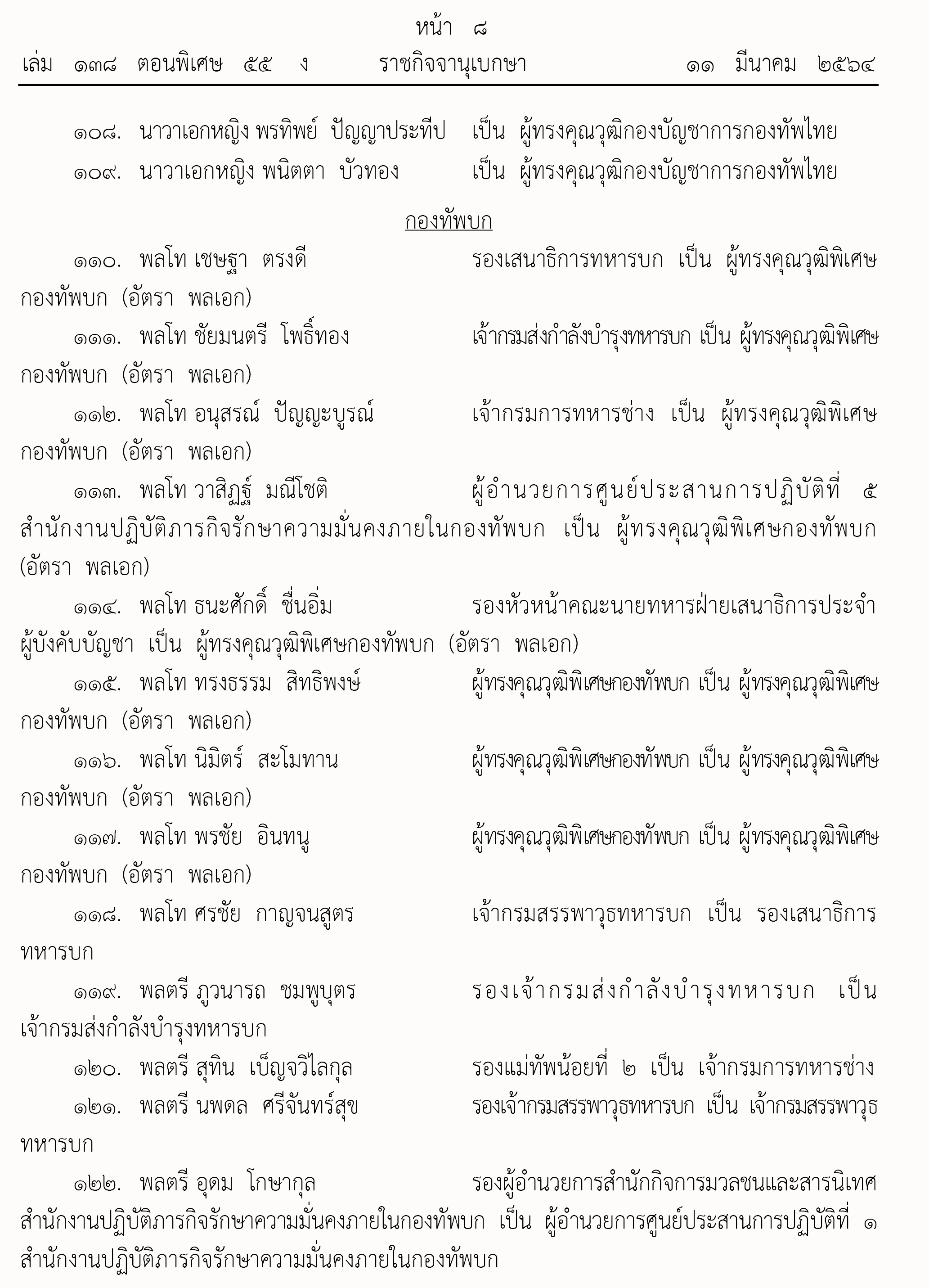 เว็บไซต์ราชกิจจานุเบกษา เผยแพร่ ประกาศสำนักนายกรัฐมนตรี เรื่องให้นายทหารรับราชการ ความว่ามีพระบรมราชโองการโปรดเกล้าโปรดกระหม่อมให้นายทหารรับราชการสนองพระเดชพระคุณ จำนวน 236 นาย