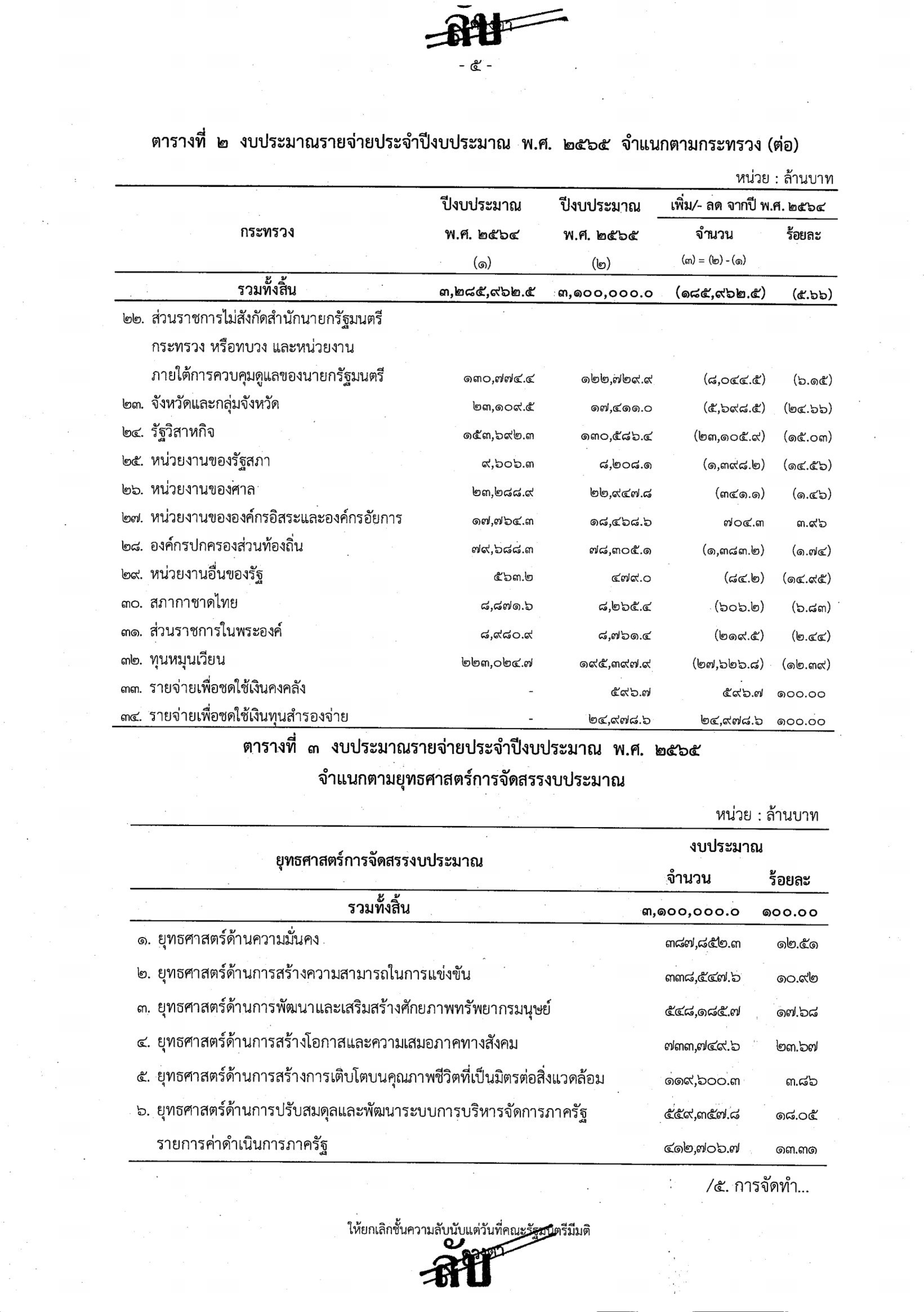 สำหรับกระทรวงที่ได้รับจัดสรรงบประมาณสูงสุด 5 อันดับแรก ได้แก่