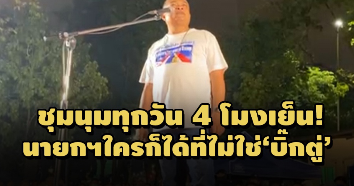 กิจกรรม 4/4/4 ไล่นายกฯ ‘จตุพร’ นัดชุมนุมทุกวัน 4 โมงเย็น ซัดใครก็ได้ในแผ่นดินนี้ที่ไม่ใช่ 'บิ๊กตู่' ชี้ไม่รับผิดชอบแก้ไข รธน.-ทำตัวสืบทอดอำนาจ ถือเป็นภัยคุกคามของชาติ ยันมาในนามส่วนตัวไม่เกี่ยว นปช.-ไม่เอาองค์กรมาเกี่ยวข้อง
