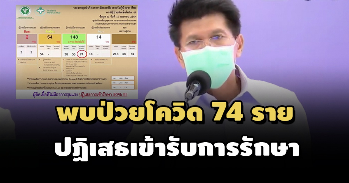 สธ. พบผู้ป่วย 74 ราย ปฏิเสธเข้ารักษาโควิดในโรงพยาบาล พร้อมยกเคส 'ค่อม ชวนชื่น' แสดงอาการน้อย แต่ตอนนี้เข้าไอซียู ย้ำผู้ป่วยรอเตียงให้ 'แยกตัว-หมั่นล้างมือ-ใส่หน้ากาก' ส่วนกรณีแม่ติดโควิดยังให้นมบุตรได้ตามปกติ