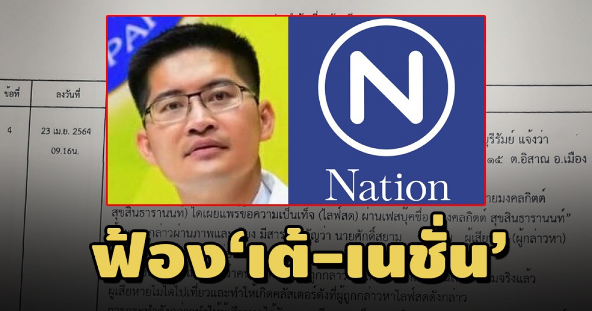 ในส่วนของบริษัท เนชั่น บรอดแคสติ้ง คอร์ปอเรชั่น จำกัด (มหาชน) นั้น แยกการร้องทุกข์ออกเป็น 3 กลุ่ม คือ 1.นิติบุคคล (บริษัท เนชั่นฯ) 2.ประธานกรรมการ และประธานกรรมการบริหารของบริษัท เนชั่นฯ 3.นางรพีพรรณ เรือนศรี และนายประชาไท ธนณรงค์ 2 พิธีกรผู้จัดรายการ ‘เนชั่นทันข่าวค่ำ’ เผยแพร่ทางช่องเนชั่น และยูทูปว์ เมื่อวันที่ 8 เม.ย. 2564 เอาผิดตาม พ.ร.บ.คอมพิวเตอร์ฯ มาตรา 14 (1) มาตรา 16 และประมวลกฎหมายอาญา มาตรา 326, 328 ประกอบมาตรา 83, 90, 91