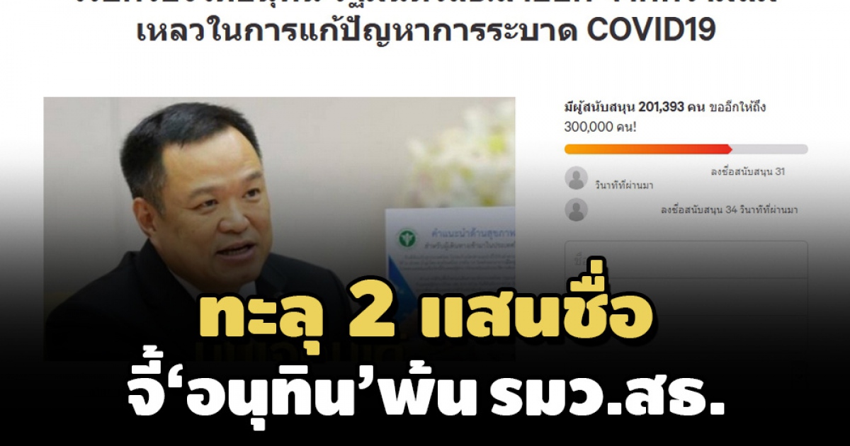 1 วัน 1 แสน! คนร่วมลงชื่อจี้ ‘อนุทิน’ พ้น รมว.สธ.เหลวแก้ปัญหาโควิด
