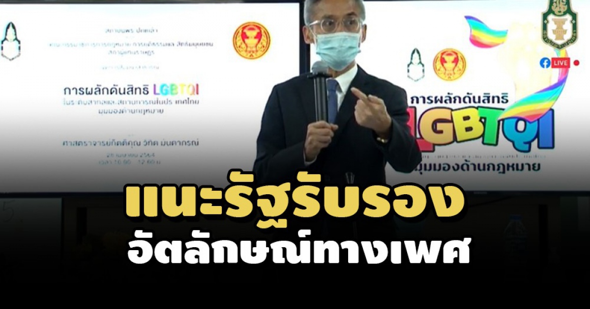 นักวิชาการจี้รัฐ หามาตรการรับรองอัตลักษณ์ของกลุ่มหลากหลายทางเพศ แนะเริ่มจากเอกสารราชการ ยังจำเป็นหรือไม่ที่ต้องระบุเพศ ย้ำทุกความสัมพันธ์ควรได้รับการคุ้มครอง