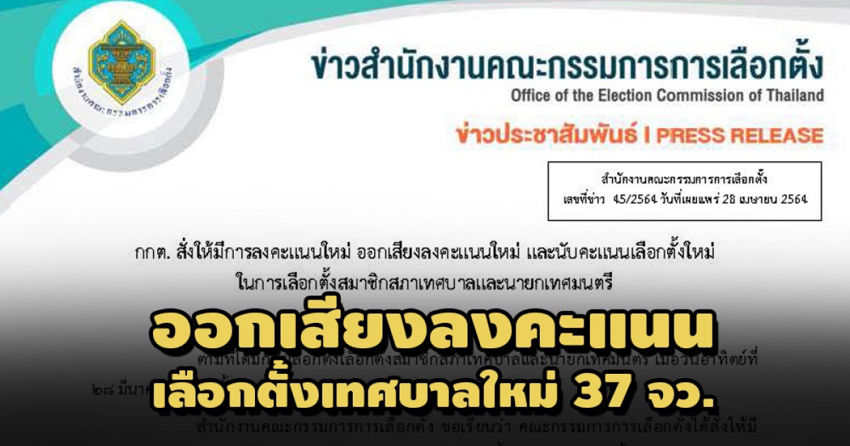 กกต.สั่งให้มีการออกเสียงลงคะแนนเลือกตั้งเทศบาลใหม่ 77 หน่วย ใน 37 จังหวัด เหตุพบบัตรปลอม-บัตรหาย-บัตรเกิน นับคะแนนใหม่ 5 หน่วยเลือกตั้งด้วย