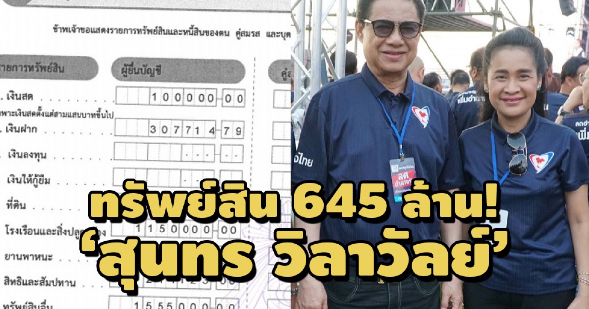 ทรัพย์สิน 645 ล้าน! ‘สุนทร วิลาวัลย์’ พ่อ รมช.ศึกษาธิการ นั่งนายก อบจ.ปราจีนบุรี ถือครองที่ดิน 220 แปลงในปราจีนฯ-สระแก้ว มีปืน 10 กระบอก สร้อยคอทองคำ-พระเครื่อง 7 องค์ 6 แสน
