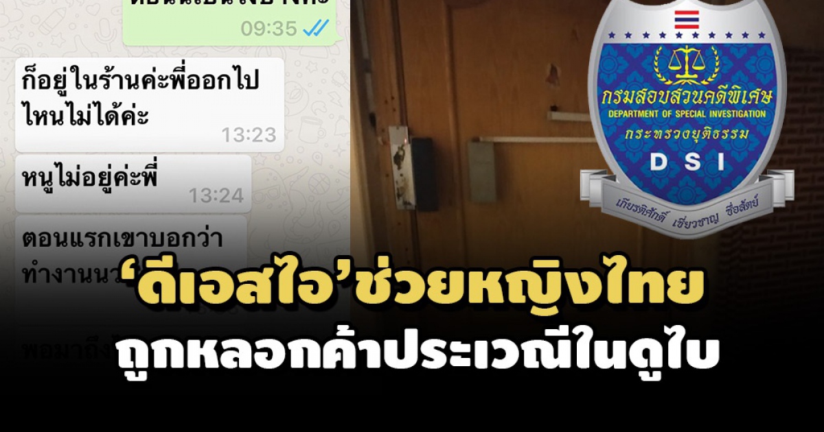 กรมสอบสวนคดีพิเศษประสานงานตำรวจดูไบบุกช่วยเหลือ หญิงชาวไทย 7 ราย ถูกหลอกค้าประเวณี เผยข้อความแชทลับ เจ้าของร้านเป็นกลุ่มชาวจีน คนคุมชาวเกาหลี บังคับทำงาน 24 ชั่วโมงใช้หนี้ค่าเดินทาง 7 หมื่น