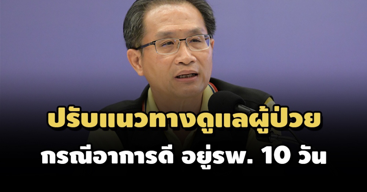 กระทรวงสาธารณสุขเผยปรับแนวทางการรักษาผู้ป่วยใหม่ กรณีอาการดีขึ้น แพทย์เห็นว่าไม่มีอาการ 24-48 ชั่วโมง ให้อยู่รพ. 10 วัน และต้องกลับไปกักตัวที่บ้านต่ออีก 4 วัน จนครบ 14 วัน นับจากวันที่ตรวจพบเชื้อ