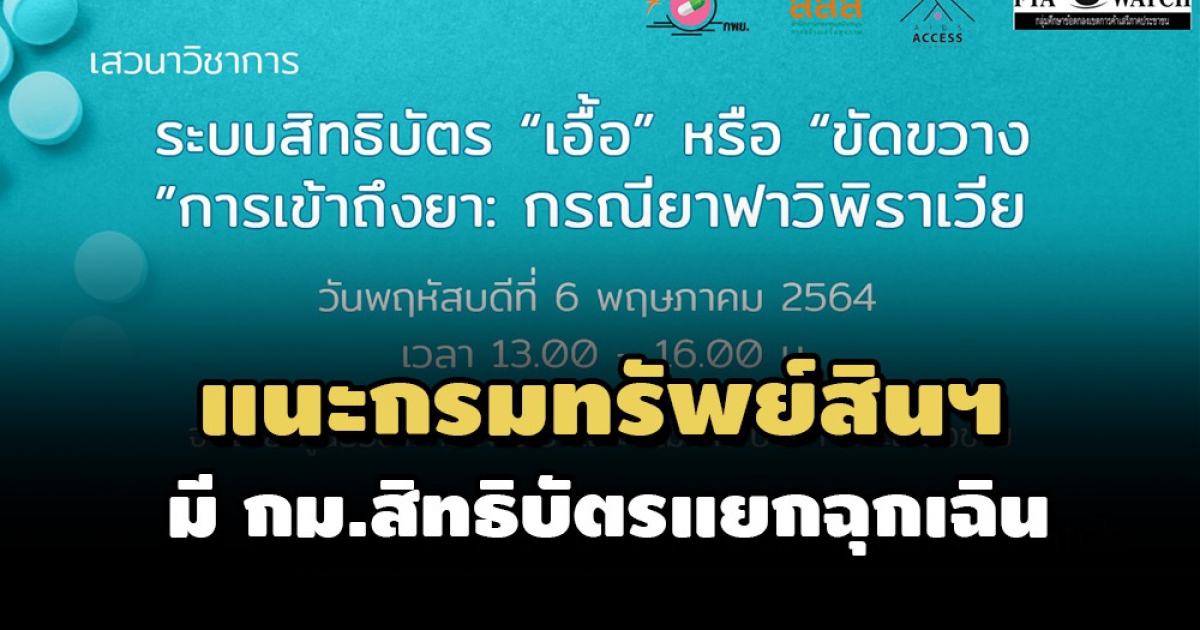 วงเสวนานักวิชาการแนะกรมทรัพย์สินฯ ปรับระบบสืบค้นให้ง่ายขึ้น เพื่อเปิดโอกาสให้ช่วยสอดส่องดูแลการจดสิทธิบัตร แนะควรมีกฎหมายแยกการพิจารณาสิทธิบัตรในกรณีฉุกเฉิน