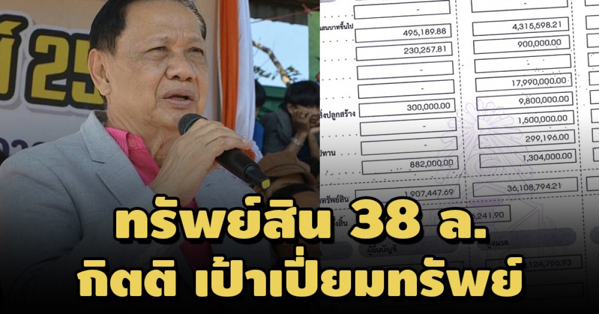รวมทั้งคู่มีทรัพย์สินทั้งสิ้น 38,016,241 บาท มีหนี้สินทั้งสิ้น 12,324,796 บาท