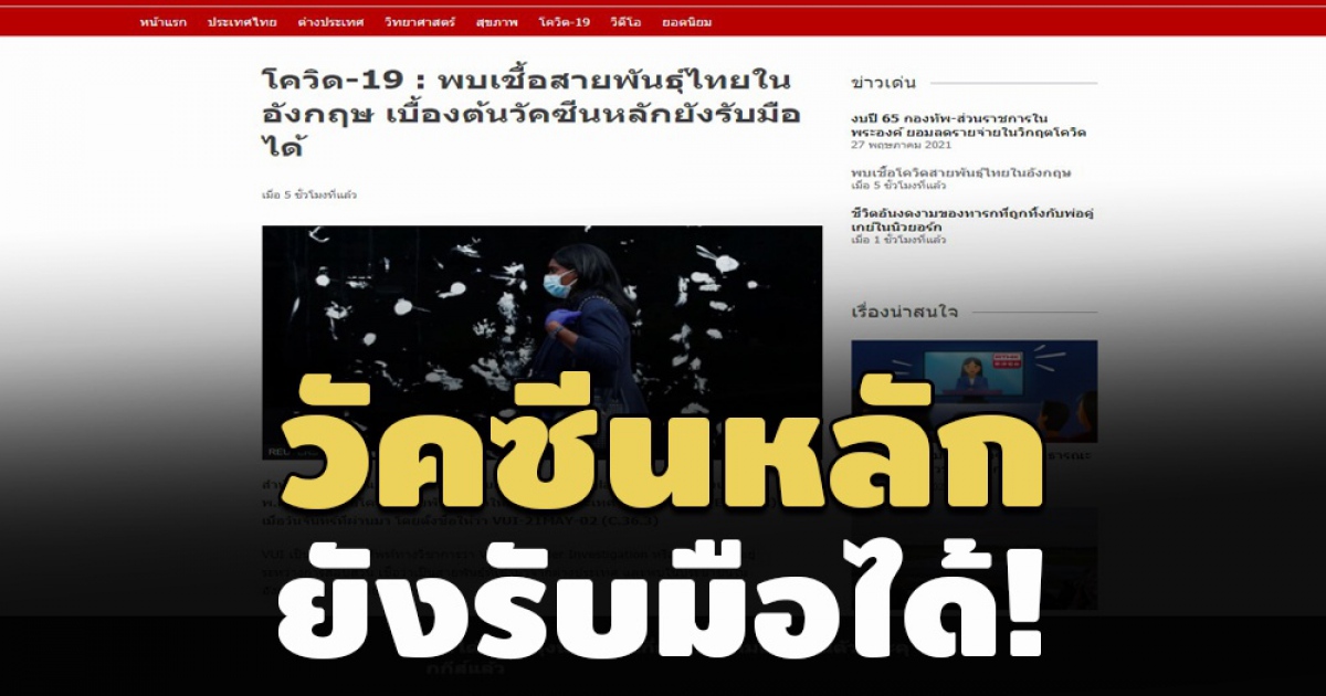 บีบีซีไทย อ้างรายงานข่าวสนง.สาธารณสุขอังกฤษ แถลงพบเชื้อโควิดกลายพันธุ์ ชนิดใหม่จากไทยในอังกฤษ ตั้งชื่อให้ว่า VUI-21MAY-02 (C.36.3) แต่วัคซีนหลักยังรับมือได้