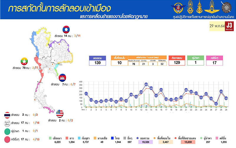 "สำหรับตัวเลขการสกัดกั้นการลักลอบเข้าเมืองในวันนี้ มีรายงานผลการจับกุม 139 ราย โดยมาจากมาเลเซีย 2 ราย ซึ่งก่อนหน้านี้รายงานการลักลอบเข้าเมืองทางภาคใต้เป็นศูนย์มาตลอด ประกอบกับตอนี้นี้มาเลเซียมียอดผู้ติดเชื้อสูง และมีการประกาศล็อกดาวน์ เราจะต้องระมัดระวังทุกด้านของประเทศไทยเป็นพิเศษ" พญ.อภิสมัย กล่าว