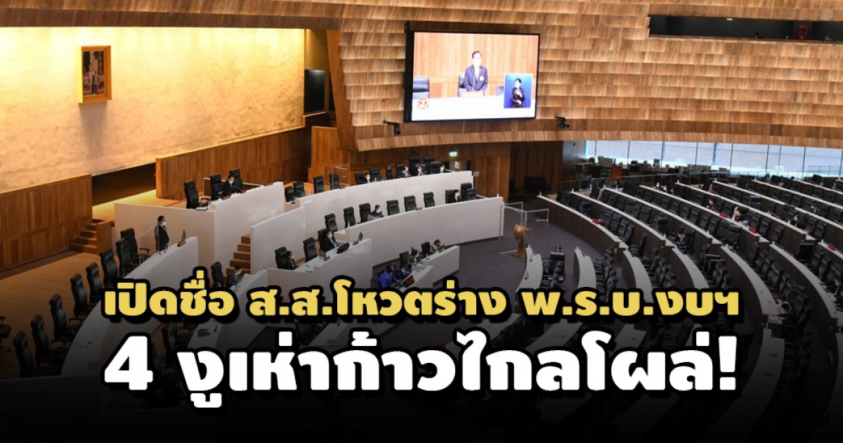 เปิดชื่อ ส.ส.โหวตเห็นด้วย-ค้านร่าง พ.ร.บ.งบประมาณฯปี 65 พบ 4 ส.ส.งูเห่าก้าวไกลโผล่โหวตเห็นชอบ ‘คารม-เอกภพ-ขวัญเลิศ-พีรเดช’ ด้าน ‘ชวน-นิคม บุญวิเศษ’ 2 คนงดออกเสียง เพื่อไทยไม่ปรากฏชื่อลงคะแนน 5 ราย ‘พลภูมิ’ ด้วย