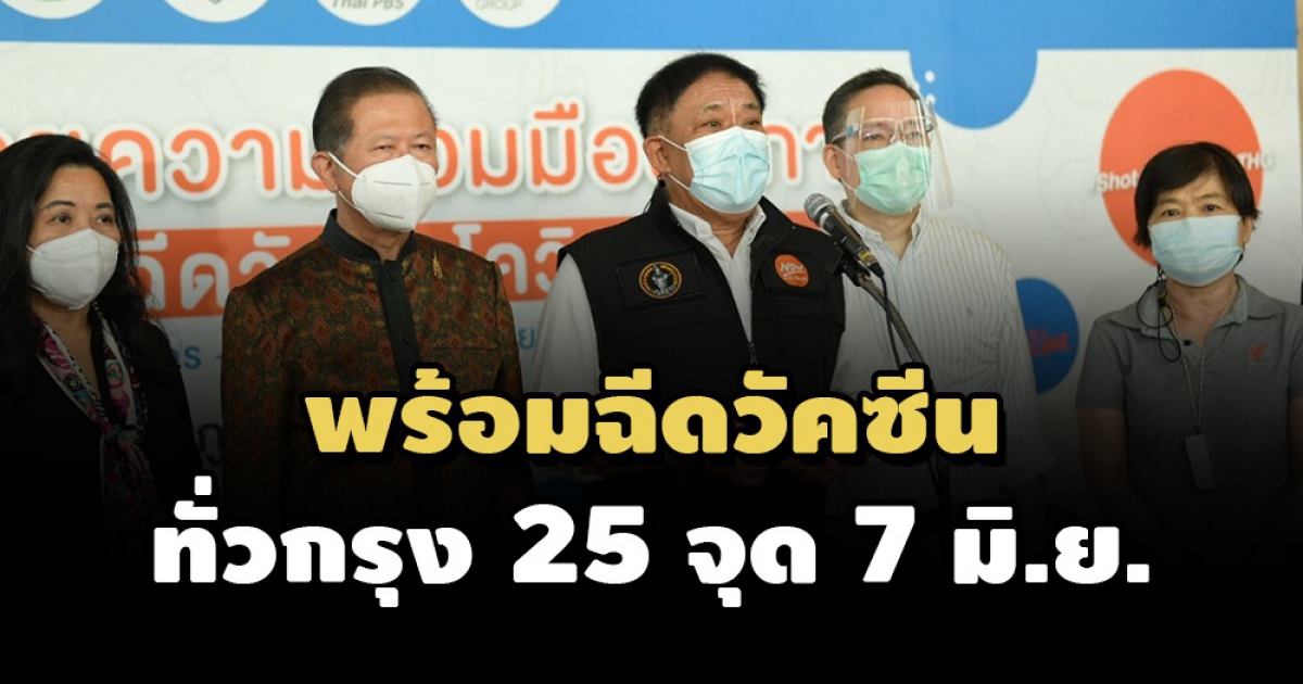 ผู้ว่าราชการกรุงเทพมหานคร ยันพร้อมฉีดวัคซีนนอกโรงพยาบาล 25 จุด ทั่วกรุง 7 มิ.ย. 2564 คาดให้บริการได้วันละ 70,000 คน พร้อมเผยในวันที่ 7 - 14 มิ.ย. 2564 ประชาชนจะได้รับวัคซีนแอสตร้าเซนเนก้า