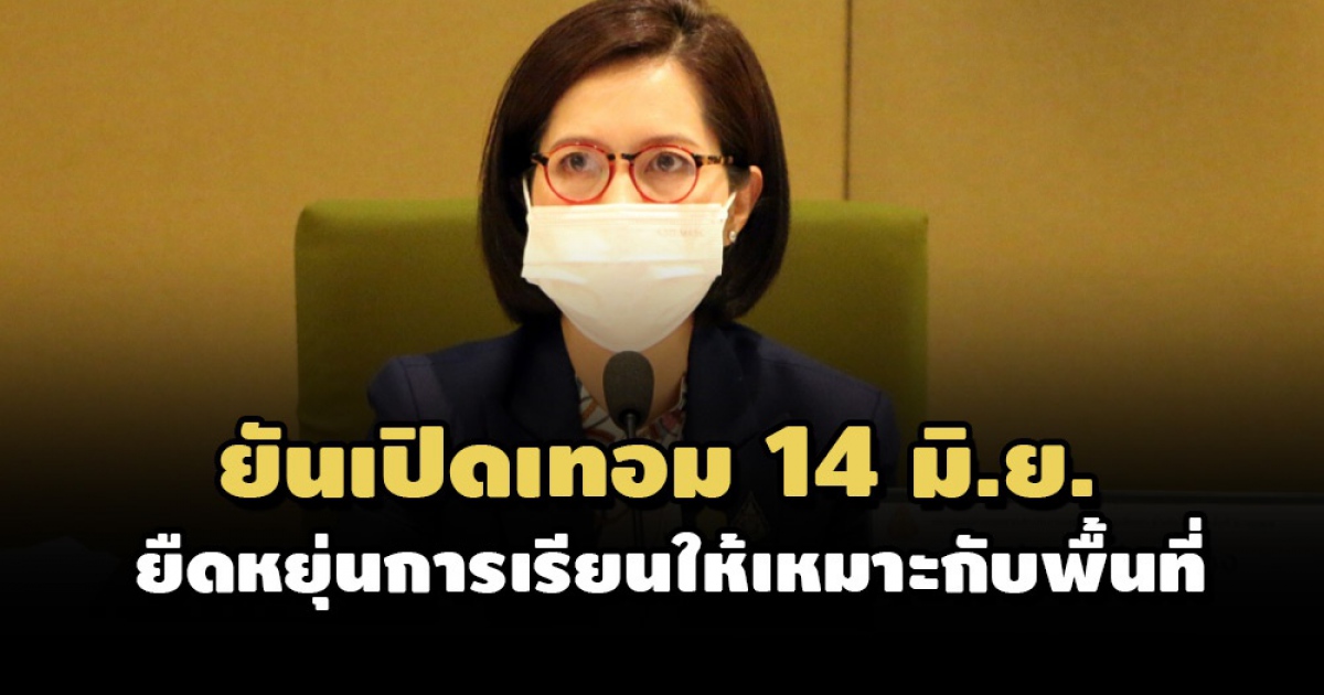 'ตรีนุช' ยันกำหนดการเดิม เปิดเทอม 14 มิ.ย.นี้ เน้นย้ำยืดหยุ่น ปรับการเรียนการสอน 5 รูปแบบ ตามความเหมาะสม ยึดผู้เรียนเป็นหลัก พร้อมเผยฉีดวัคซีนโควิดครูแล้ว 70%