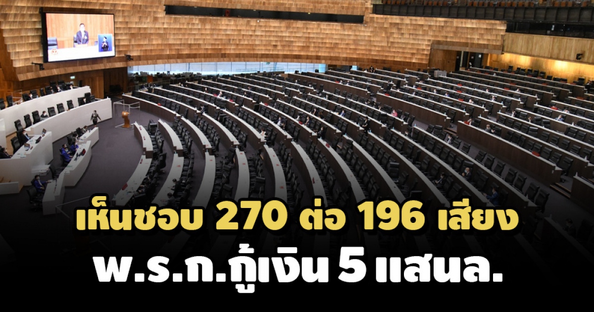 สภามีมติ 270 ต่อ 196 เสียง งดออกเสียง 1 เสียง ไม่ลงคะแนน 2 เสียง เห็นด้วยกับ พ.ร.ก.กู้เงิน 5 แสนล้านบาท ขณะที่ 'หมอชลน่าน' อภิปรายปิด กางเหตุผล 4 ข้อไม่ควรอนุมัติ ย้ำไม่มีความจำเป็นเร่งด่วน ผู้นำขาดความรู้ความสามารถ จี้ยุบสภา - ลาออกเพื่อฟื้นฟูความเชื่อมั่น