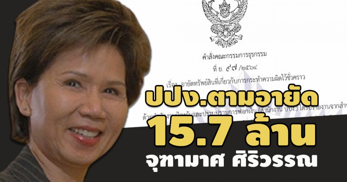 ปปง.ตามอายัดเงิน 15.7 ล้าน ‘จุฑามาศ ศิริวรรณ’ อดีตผู้ว่าการ ททท. ในแบงก์ประเทศสิงคโปร์ในชื่อลูกสาว ฟอกเงินคดีรับสินบน จัดเทศกาลหนัง หลังศาลฎีกาจำคุก 50 ปี