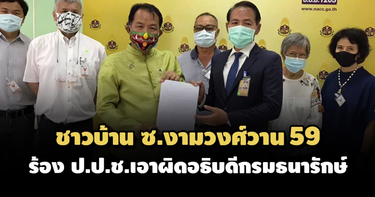 'ศรีสุวรรณ' นำชาวบ้าน ซ.งามวงศ์วาน 59 ยื่นหนังสือร้อง ป.ป.ช. ขอให้เอาผิดอธิบดีกรมธนารักษ์ ปมนำสวนหย่อม-ถนนสาธารณะริมคลองเปรมประชากรให้เอกชนเช่าปลูกบ้านอาศัย