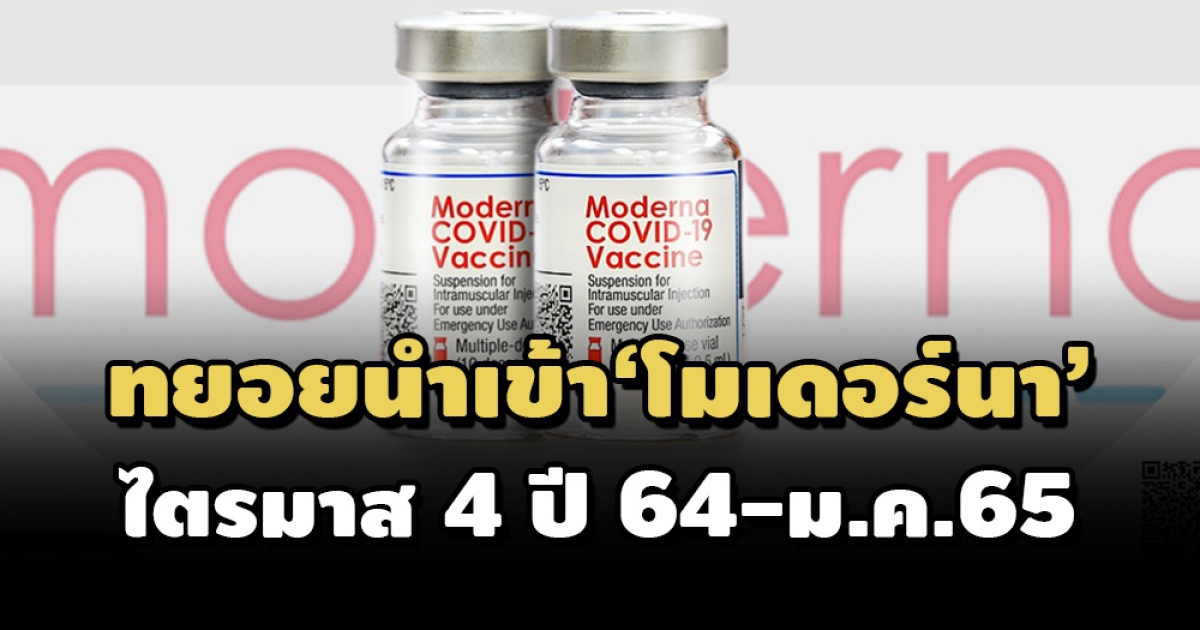 อภ.เผยวัคซีนโมเดอร์นา จำนวน 5 ล้านโดส จะทยอยนำเข้าไทยช่วงไตรมาสที่ 4 ปี 2564-ม.ค.2565 ขณะนี้อยู่ในขั้นตอนการจัดทำร่างสัญญาให้เป็นไปตามกฎหมายของไทยและต่างประเทศ คาดจะเซ็นสัญญาสั่งซื้อแล้วเสร็จ ส.ค.2564