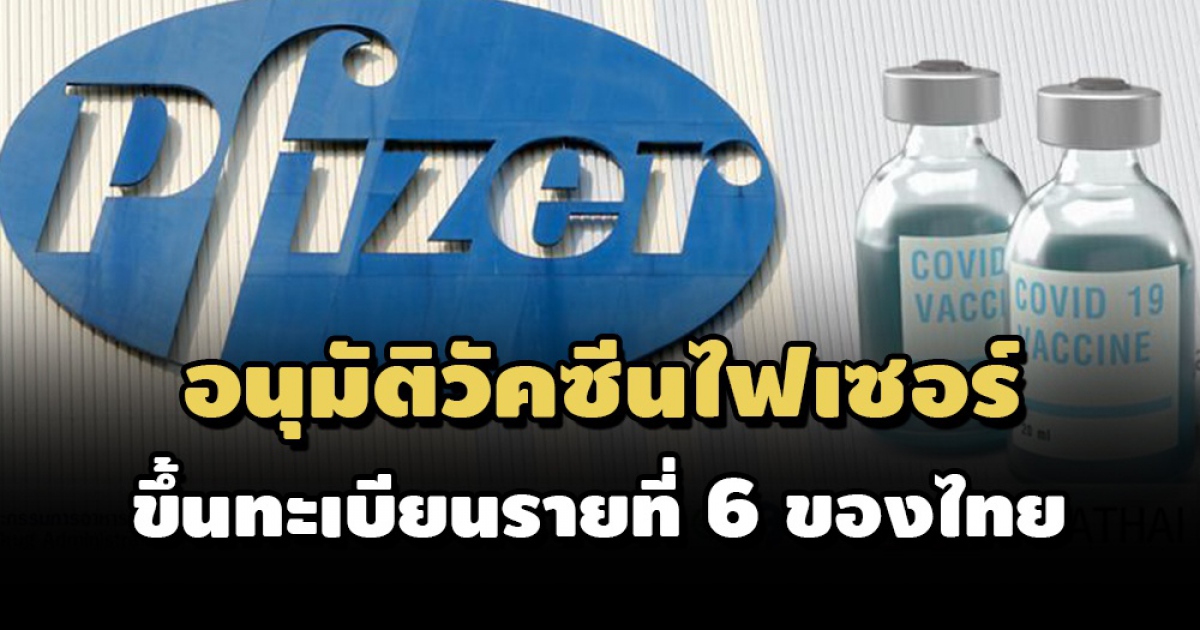 สำนักงานคณะกรรมการอาหารและยา อนุมัติ 'วัคซีนไฟเซอร์' แล้ว เป็นวัคซีนขึ้นทะเบียนรายที่ 6 ของไทย ฉีดได้ตั้งแต่อายุ 12 ปีขึ้นไป เผยฉีด 2 เข็มห่างกัน 21 วัน