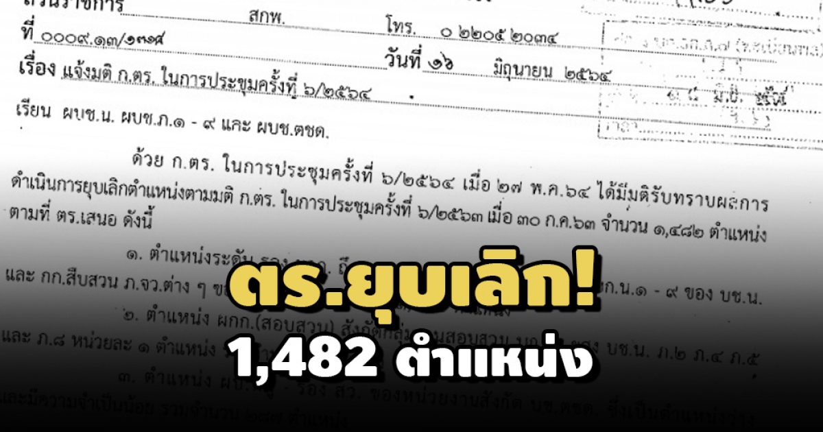 มติ ก.ตร.ยุบเลิก 1,482 ตำแหน่ง ทั้งระดับ รอง ผกก.-ผบ.หมู่-รอง สว. น.1-9 รวม 1,190 ตำแหน่ง ผกก.สอบสวนฯ บช.น. ภ.2-4-5-8 แห่งละ 1 เก้าอี้ ผบ.หมู่-รอง สว. 287 เก้าอี้ เหตุเป็นตำแหน่งว่าง ความจำเป็นน้อย