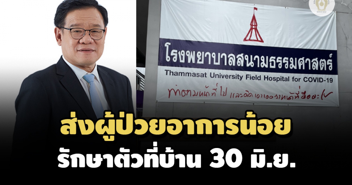 รพ.ธรรมศาสตร์ฯ เตรียมนำผู้ป่วยสีเขียว - อาการน้อย ส่งกลับไปรักษาตัวที่บ้าน 30 มิ.ย. คาดลดจำนวนผู้ป่วยในโรงพยาบาลได้ถึงครึ่งหนึ่ง ช่วยระบบสาธารณสุขรอดพ้นจากหายนะ
