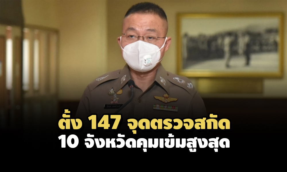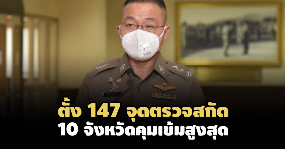 สำนักงานตำรวจแห่งชาติ ได้สรุปภาพรวมผลการตั้งจุดตรวจ จุดสกัด ในพื้นที่จังหวัดที่ประกาศเป็นพื้นที่ควบคุมสูงสุดและเข้มงวด จำนวน 10 จังหวัด ข้อมูล ณ วันที่ 11 ก.ค. 2564 รวมจำนวน 147 จุด ดังนี้